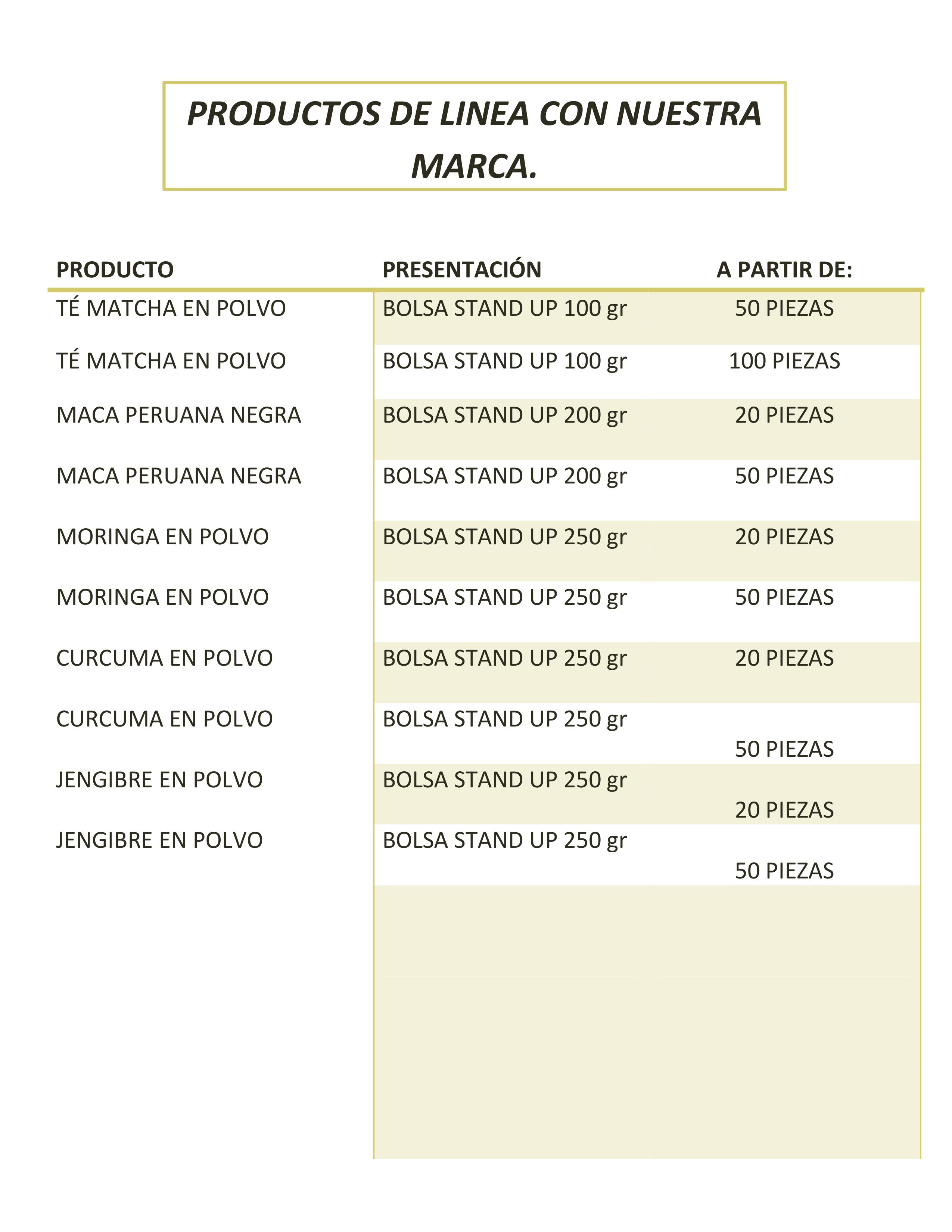 de su preferencia como, licuados, agua de sabor, jugos, café etc.
